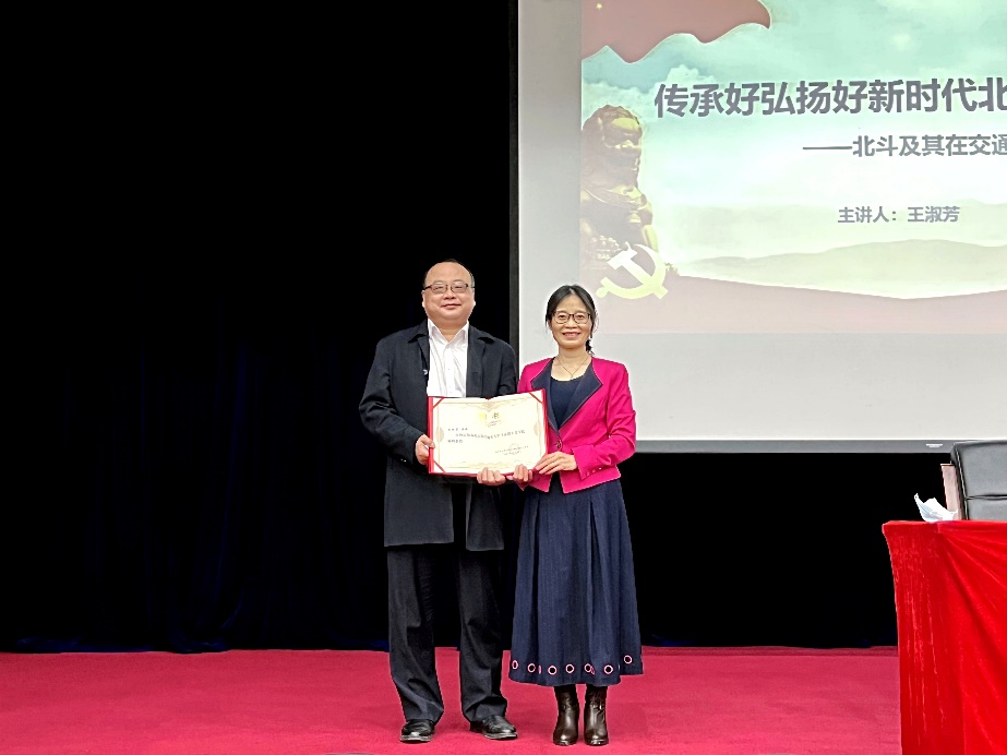 2021年12月15日下午,我院“思想道德与法治”课程邀请北航1995届校友、中组部《榜样3》典型人物、中国交通通信信息中心导航中心副主任、北斗知名专家王淑芳走进思政课课堂,为2021级本科生做《传承好弘扬好新时代北斗精神——北斗及其在交通行业的应用》专题讲座。报告主会场设在学术交流厅,以两校区同步、线上线下相结合的方式举行。我校高等理工学院、未来空天技术学院和士谔书院的300余名本科生在现场聆听了此次报告。报告由院长助理付丽莎副教授主持。