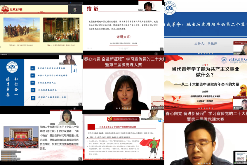 近日,为深入学习贯彻党的二十大精神,进一步学懂弄通做实习近平新时代中国特色社会主义思想,提升研究生的思想理论水平,英国上市公司365举办的“青春心向党,奋进新征程”学习宣传党的二十大精神暨第三届微党课大赛。副院长陈萌、2022级博士班主任巩永丹、硕士班主任徐冶琼和2021级硕士班主任刘浩然担任比赛评委,参赛研究生通过线上方式进行宣讲展示,全体硕士研究生旁听。比赛由2022级研究生辅导员杜玥主持。