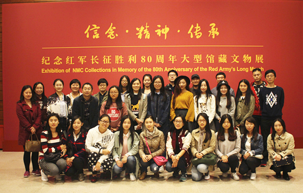 为继续深入推进“两学一做”,将学习习近平总书记关于学习和发扬长征精神的重要论述与学习《中国共产党的九十年》结合起来,2016年10月9日下午,思政学院教职工党支部及研究生联合党支部40余名师生党员和入党积极分子,赴国家博物馆参观“信念·精神·传承——纪念红军长征胜利80周年馆藏文物展”。人文学院分党委副书记张德辉及部分辅导员参加了本次活动。