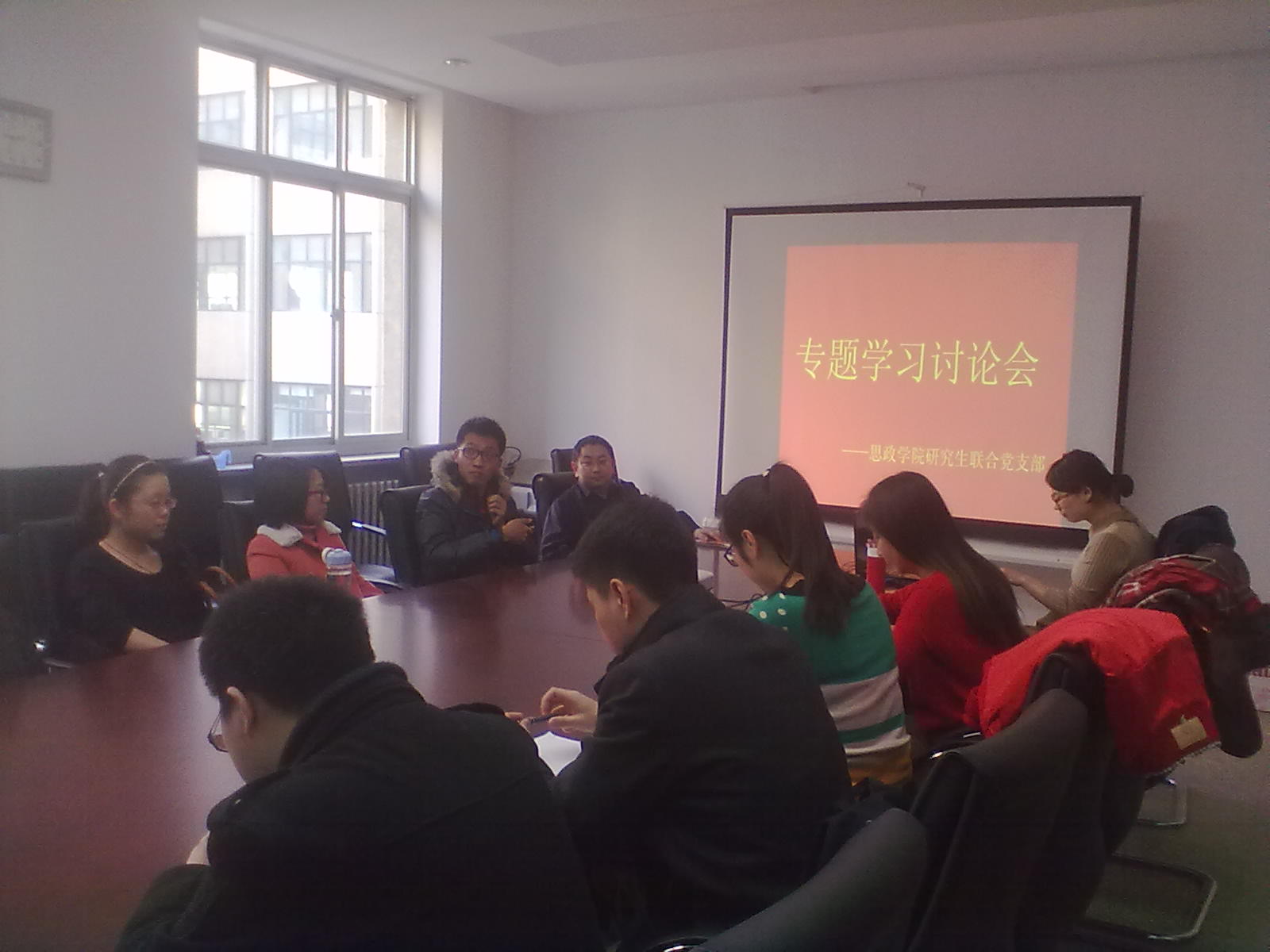 为响应学校对研究生党员提出的“践行社会主义核心价值观,争做成才表率”的学习要求,2014年3月2日下午,我院全体研究生在学院305会议室召开了专题学习讨论会。学院高宁老师,研究生辅导员、党支部书记黄坤琦出席了会议。会议由高宁老师主持。