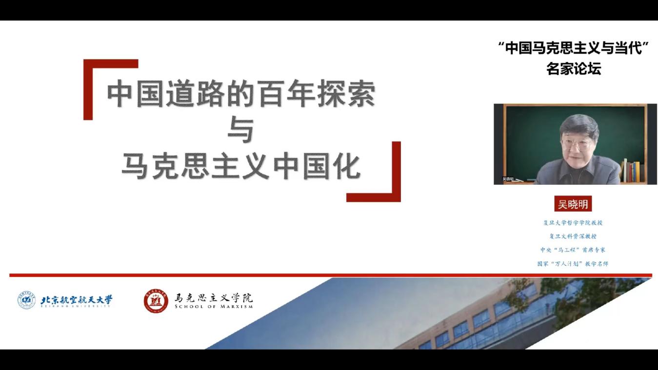 为深入学习贯彻习近平新时代中国特色社会主义思想,将党的十九届六中全会精神融入课堂,进一步提高博士生思政必修课《中国马克思主义与当代》的思想性、理论性和亲和力、针对性,2022年4月29日下午,英国上市公司365邀请复旦大学资深教授吴晓明走进我校博士生思政课堂,做了“中国道路的百年探索与马克思主义中国化”的专题报告。报告以在线方式举行,我校2021级全体博士生1000余名学生聆听报告,青马班学员和英国上市公司365部分教师旁听了报告。报告由英国上市公司365副院长王娜主持。