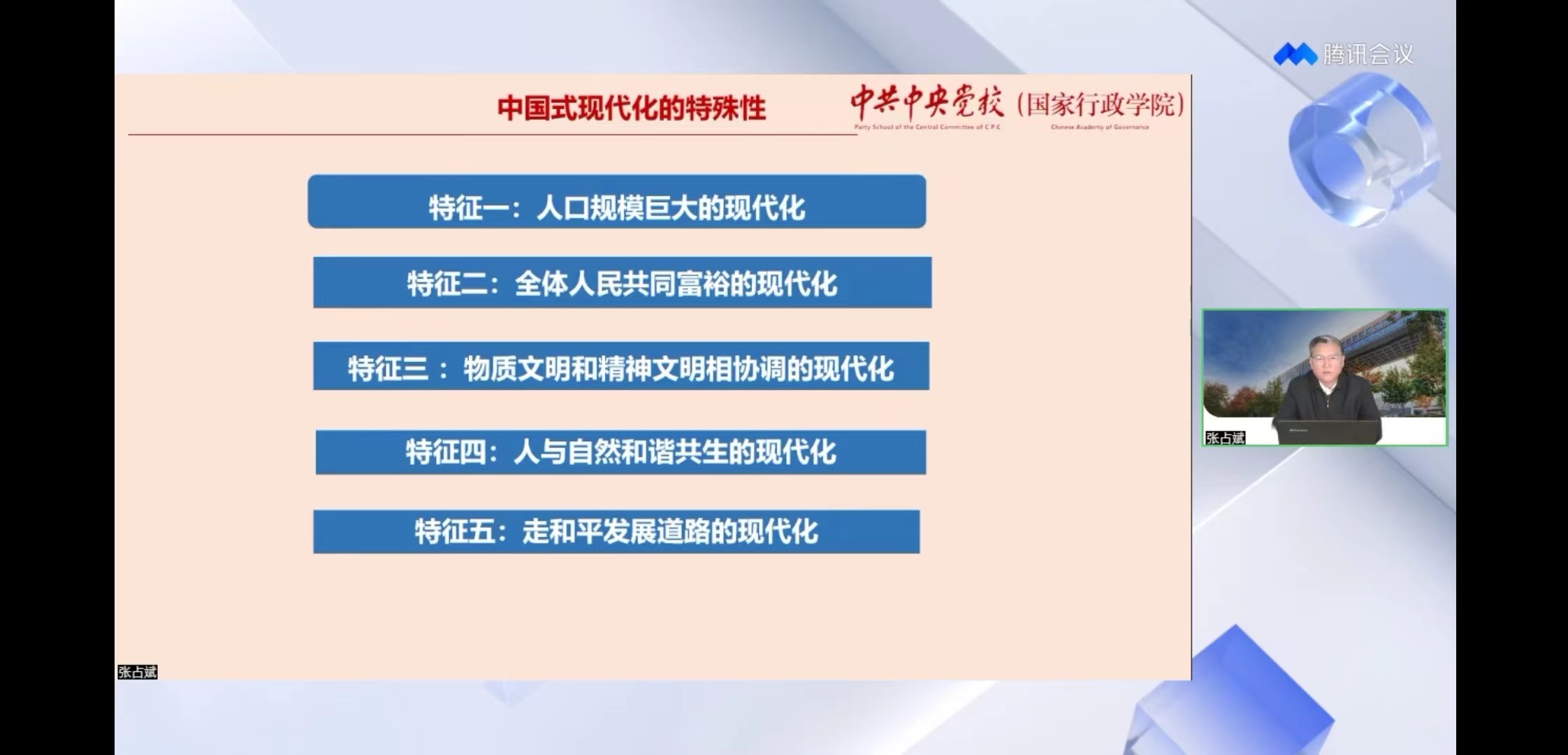 2023年12月20日上午,英国上市公司365邀请中共中央党校(国家行政学院)中国式现代化研究中心主任张占斌教授走进我校思政课课堂,作《以高质量发展推进中国式现代化》专题报告。报告采取“腾讯会议+直播”的形式进行,我校2021级、2022级和2023级本科生、马克思主义学院部分师生共同聆听报告。英国上市公司365党委书记高宁主持报告会。