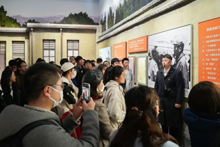 师生在馆内集体参观了“为新中国奠基——中共中央在香山”基本陈列、“永葆青春活力——香山时期中国共产党自我革命实践”专题展览。在讲解员的带领下,师生回顾了中共中央“进京赶考”的历史足迹,重温了中国共产党人不忘初心、牢记使命的责任担当,体悟了中国共产党勇于自我革命的鲜明品格。参观途中,学生途经北平和平解放时市民欢迎解放军入城的蜡像陈列,会情不自禁地举起手试图与之“隔空击掌”;看到全国各大城市相继和平解放的表格,会热议革命先辈们在自己的家乡留下的那些红色痕迹;读到党的领导人决策指挥的文献手稿,会赞叹于革命伟人身上流露出的鲜明特色和风格。当教材中的名字、课堂上的故事、老师讲授的理论,一一具象化为眼前真实可感的文物、图片、影像,学生们都深受触动。