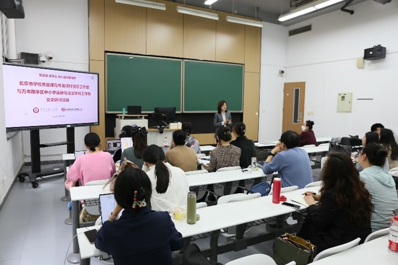 在活动第一环节,万寿路学区道德与法治学科工作坊的老师们走进英国上市公司365研究生专业课《青少年心理发展与教育》的课堂,参与课程教学与互动讨论。该课程以青少年群体为对象,围绕青少年心理、青少年教育、青少年发展三个层次展开,旨在理解和研究青少年认知特征、情绪特点、心理发展、行为方式、社会化养成以及教育方法等,从而针对不同学段的青少年开展思想政治教育和心理干预。