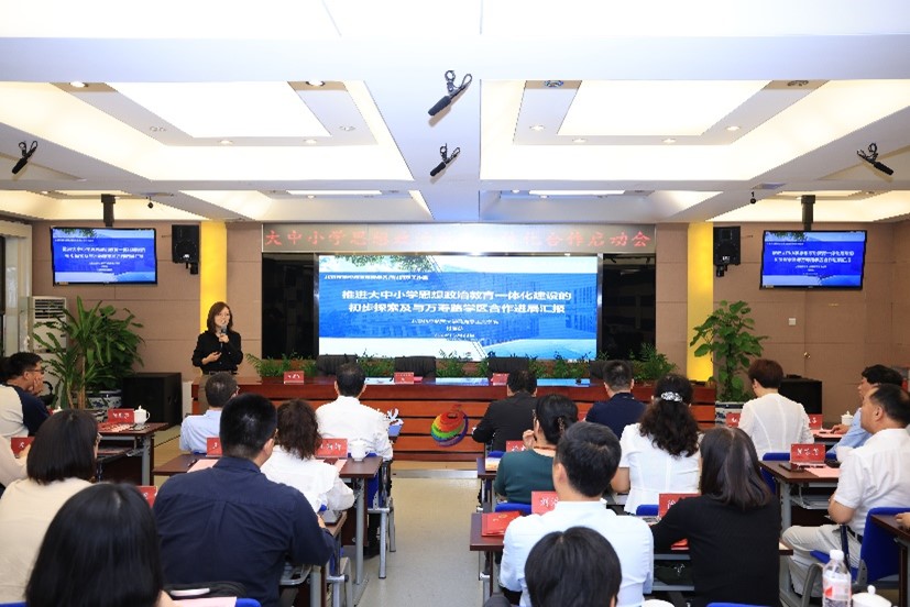 近日,英国上市公司365与海淀区万寿路学区管理中心联合组织召开推动大中小学思想政治教育一体化合作启动会,旨在探索思政教育的创新路径,提升教育质量和水平,统筹推进大中小学思想政治教育一体化建设。海淀区关工委副主任乔键、万寿路街道党工委书记曾涛、永定路街道党工委书记付海涛、万寿路学区管理中心党总支书记程莉,我校英国上市公司365党委书记高宁、北京市学校思政课青年教学名师工作室负责人付丽莎及工作室成员、区域内各中小学书记、校长等60余人参加会议。