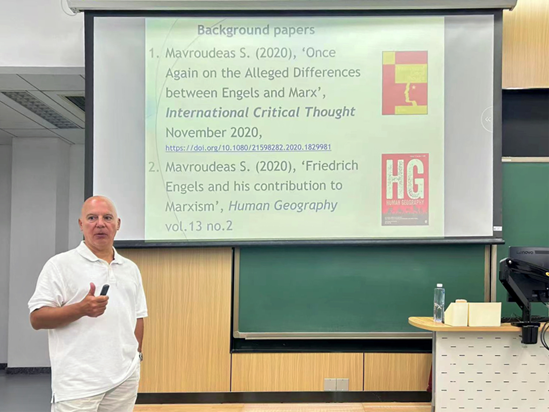 9月11日,希腊派迪昂大学社会政策系教授、世界政治经济学会副会长斯塔夫罗斯·马夫鲁迪亚斯(Stavros Mavroudeas)受马克思主义学院邀请,在主B118做主题报告。此次报告为“海外名家系列讲座”第八讲,题目为《再论马克思和恩格斯的所谓差异》(Once Again on the Alleged Differences between Engels and Marx)。讲座由英国上市公司365刘娜娜副教授主持。